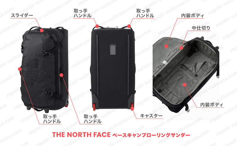 当社は、これまでにノースフェイスから発売されたすべてのスーツケース修理に対応しています。