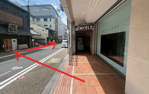 阪急電車、京都河原町駅中央改札を出て10番出口まで直進。