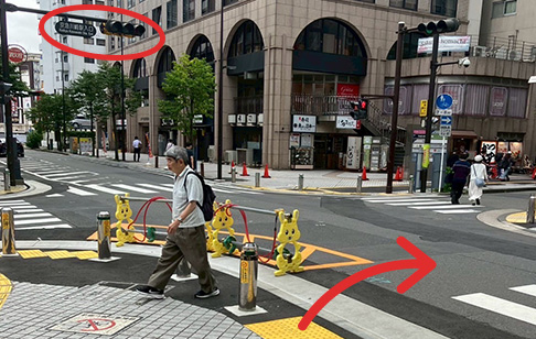 直進し、砂子一丁目の交差点を直進