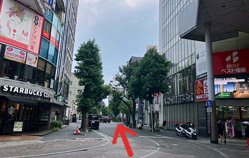 北村時計店と焼き鳥barミイルの間の通路を進みます。