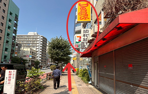 横断歩道を渡り、セブンイレブン方面へ