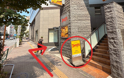 デニーズの看板を超えた先を右折