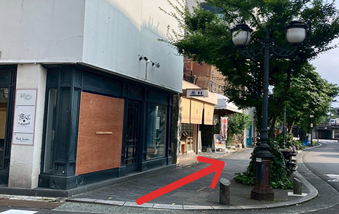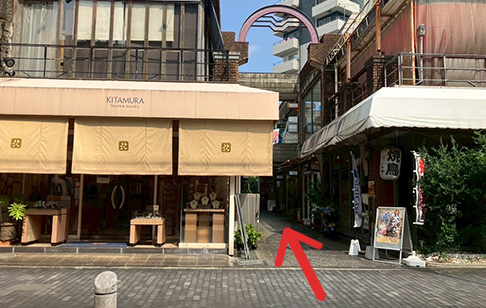 北村時計店と焼き鳥barミイルの間の通路を進みます。