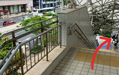 ※1:車でご来店予定の方はここの道路は一方通行になるので、お手数ですが、ホテルコレクティブの先の交差点で右に入って区画を一周してご来店ください